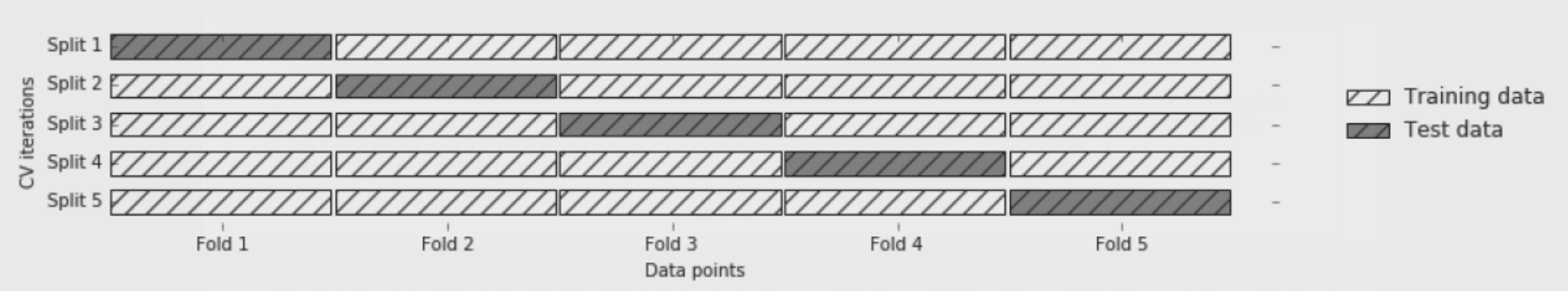 交叉测试(Cross-Validation):也就是交叉验证,比如常见的 k 折交叉验证,将数据集先划分为 K 份,比较常见的为 5 或 10 份,一份数据作为测试集,另外几份作为训练集,循环五次,即每一份数据都作为过测试集,也就是会得到五个模型精度,取均值作为该算法的评价。五折交叉中训练集比例为 4/5,即 0.8,交叉测试训练集比例高于独立测试,所以交叉测试结果会比独立测试结果好。