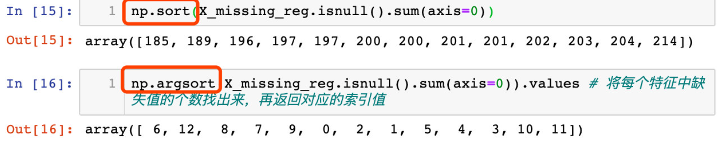 由于是从最少的缺失值特征开始填充,那么需要找出存在缺失值的索引的顺序:argsort函数的使用