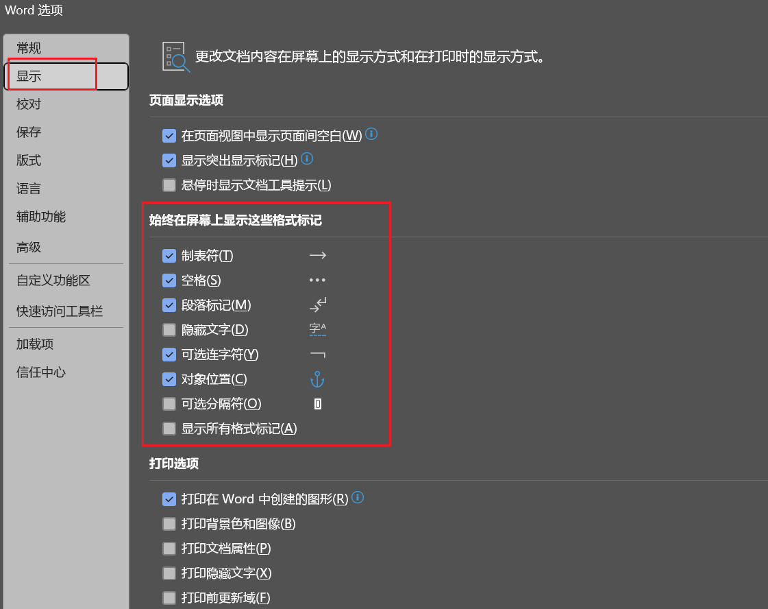 隐藏或显示word中的标记 Posted on 2024-04-30 Edited on 2024-05-02 In 科研学习 , 软件使用 Views: Symbols count in article: 40 Reading time ≈ 1 mins. 编辑标记: 段落标记、制表符、空格:文件--选项: 表格网格线:选中表格: 参考文章 无 Post author: Jay chou Post link: https://www.sdhlw.top/隐藏或显示word中的标记/ Copyright Notice: All articles in this blog are licensed under BY-NC-SA unless stating additionally.