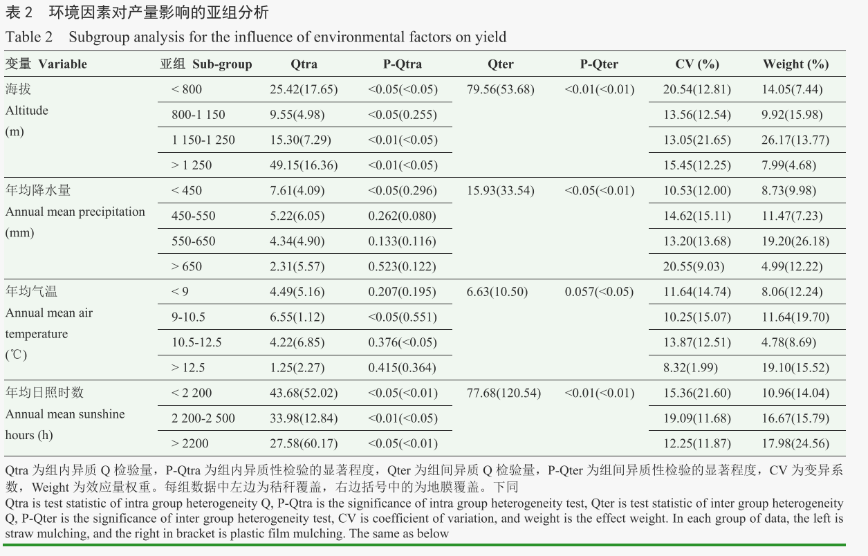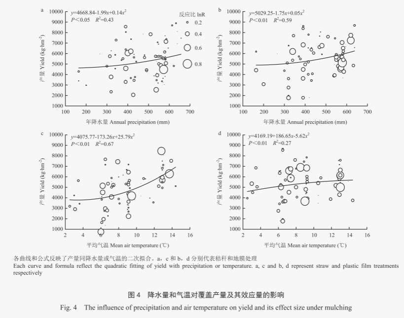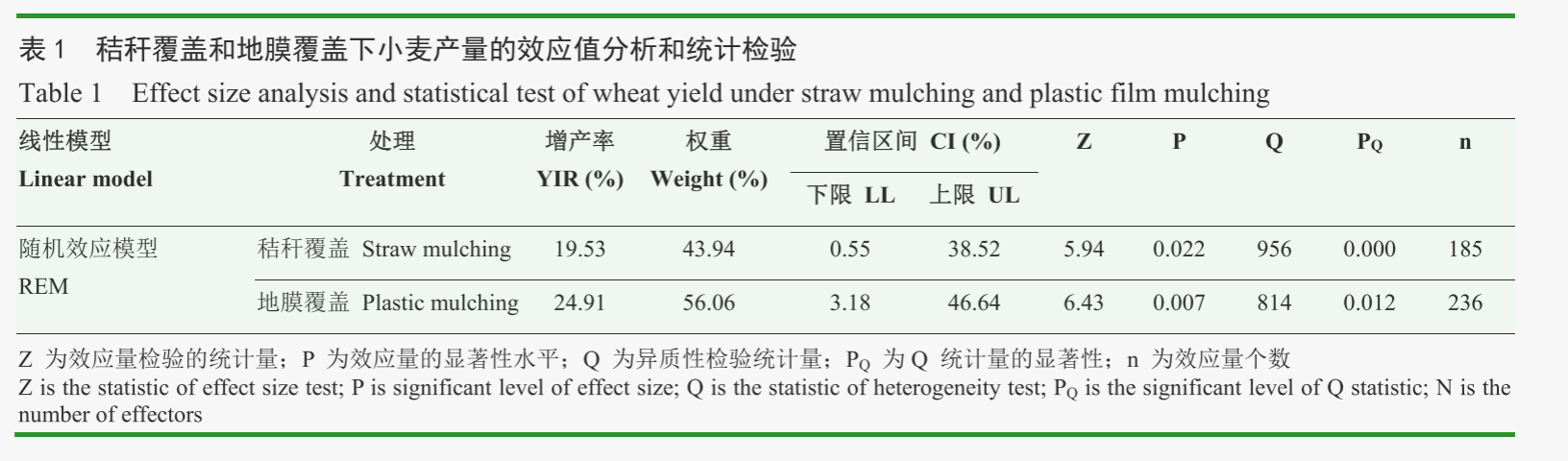 方法:近 40 年,165 篇文献,荟萃分析(Meta-analysis),整体采用随机效应模型,重点揭示覆盖增产效应对不同环境条件(海拔、降水量、气温、日照)及田间管理措施(覆盖周期、种植密度、耕作、施肥)的响应规律。