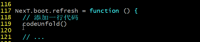 | NexT.boot.refresh = function () { // 添加一行代码 codeUnfold() // ...